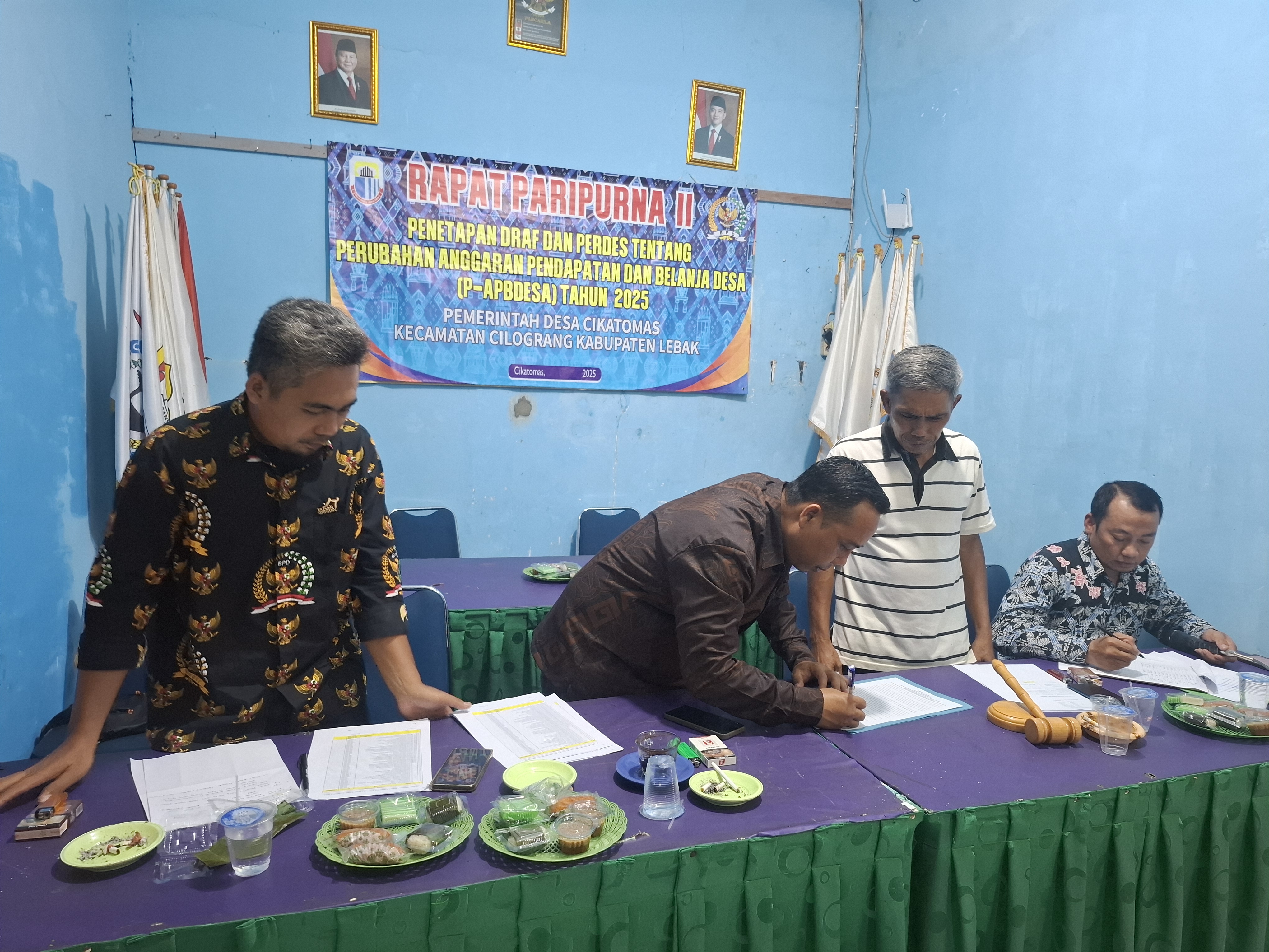 Musyawarah Desa Pembahasan dan Uji Publik Perubahan Anggaran Pendapatan dan Belanja Desa (P-APBDesa)tahun 2025 didesa cikatomas