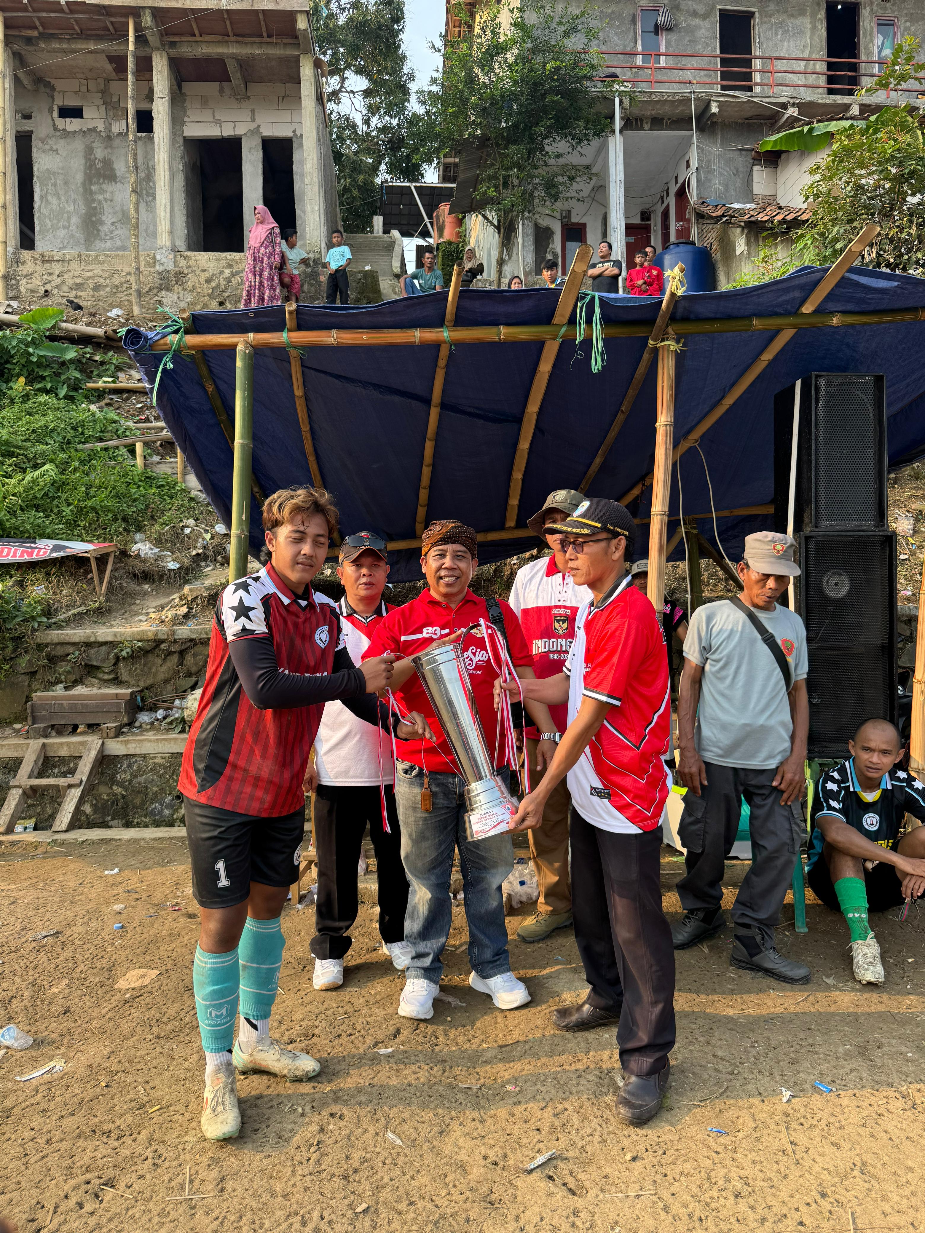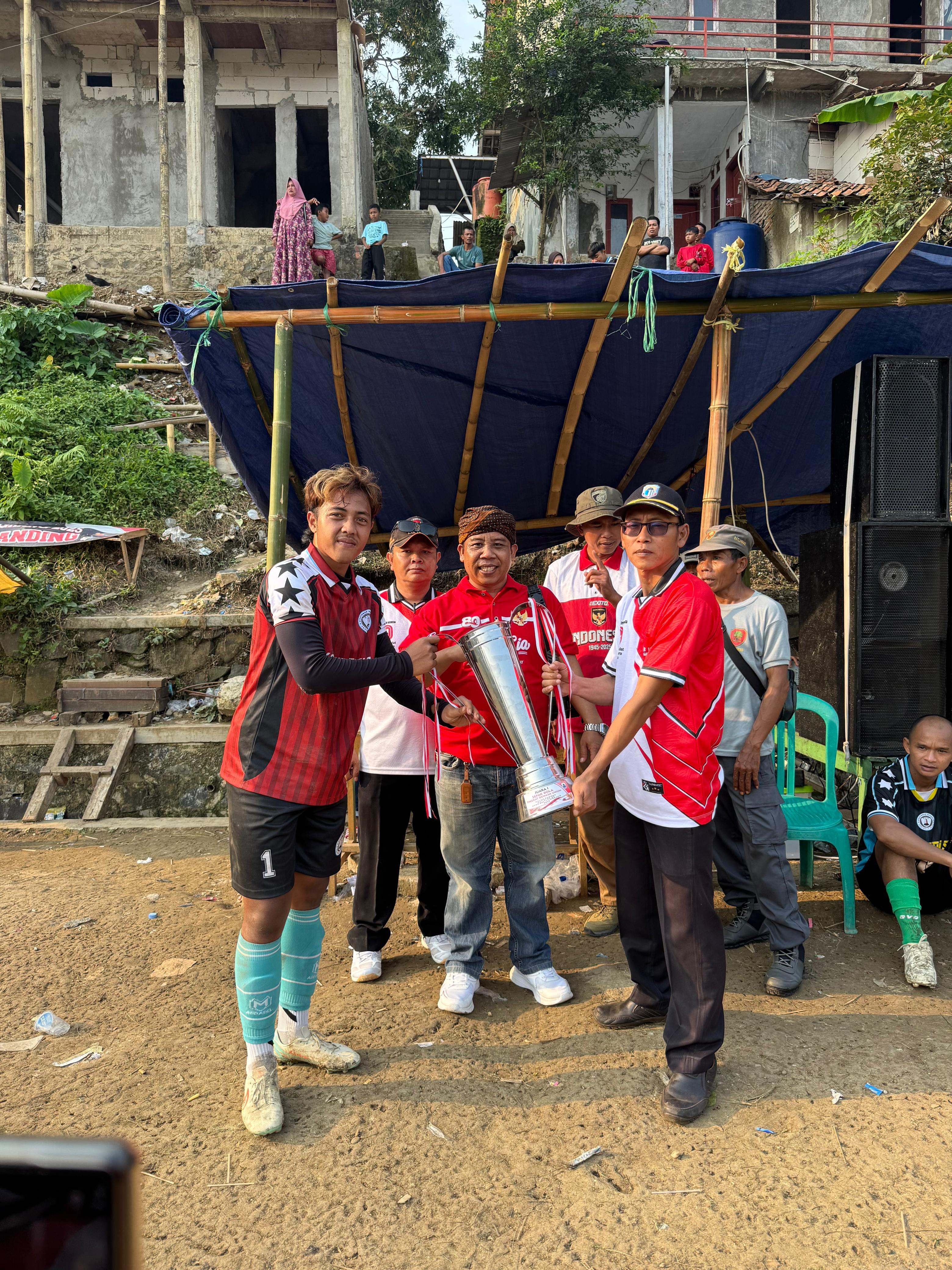 Penyerahan piala Juara 1 sepak bola dewasa diacara PHBN kecamatan